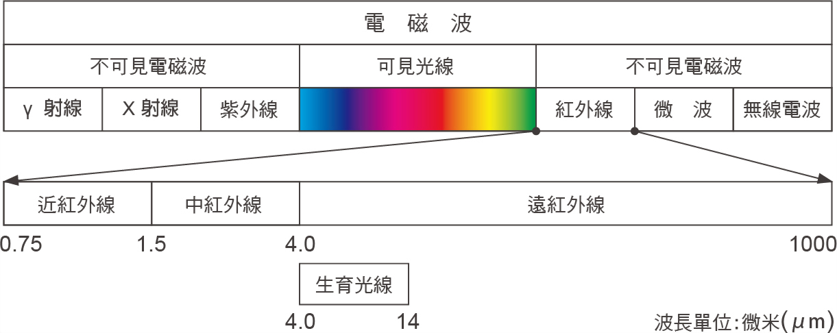 近25年來,許多科學家發現紅外線內有一段波長對生命個體有正面的幫助,這段波長就是通稱的「遠紅外線」。幾十年來,很多科學家就發現4-14μm的光波是動植物生命所需的光波,因而稱之為『生育之光』。